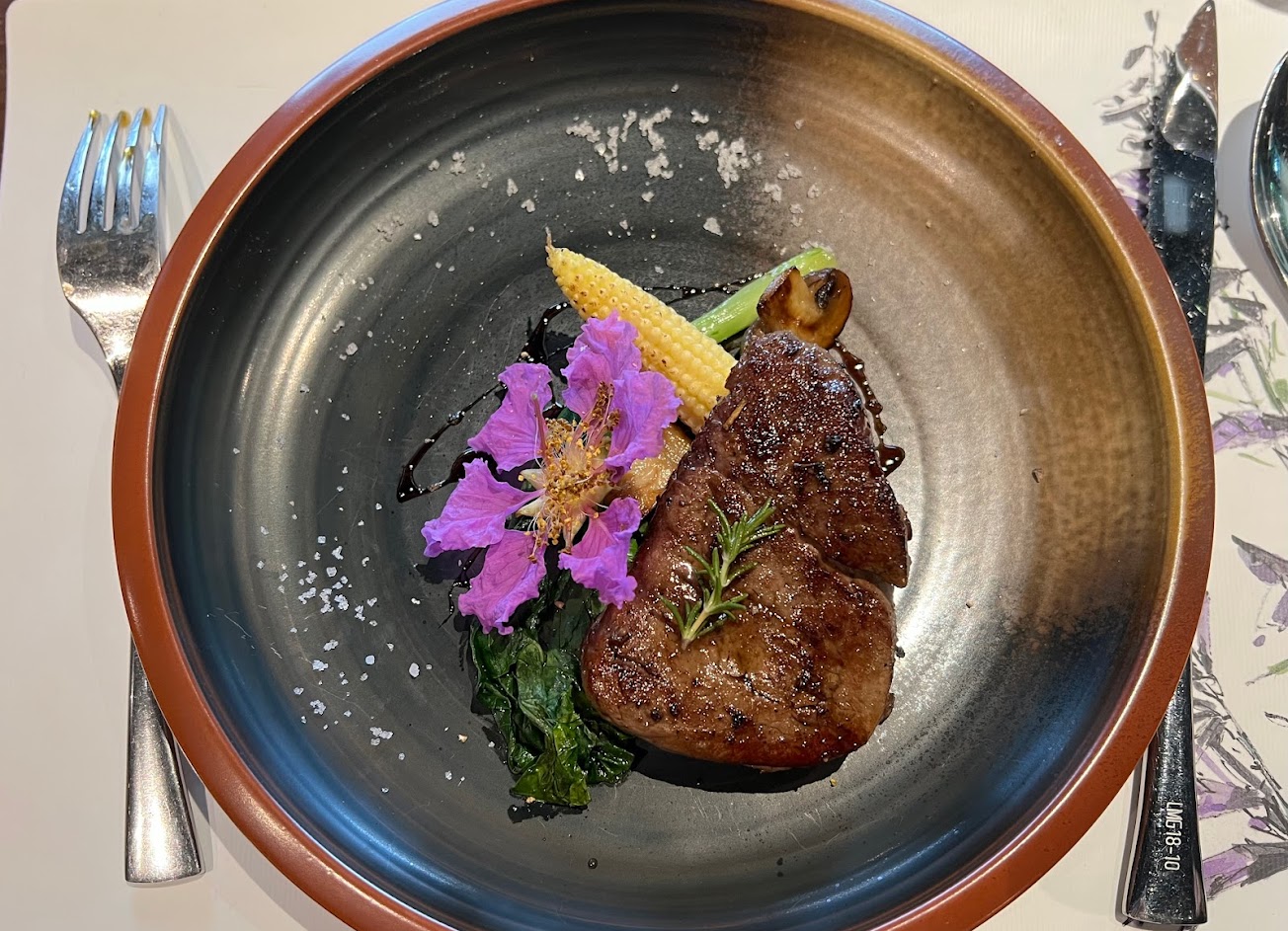 餐點都很特別;沙拉,湯,前菜,口味與口感都很讓人感到十分驚豔,擺盤上也看得出主廚的用心。讓主餐牛排出現時,在對比上都感到有點失色了。