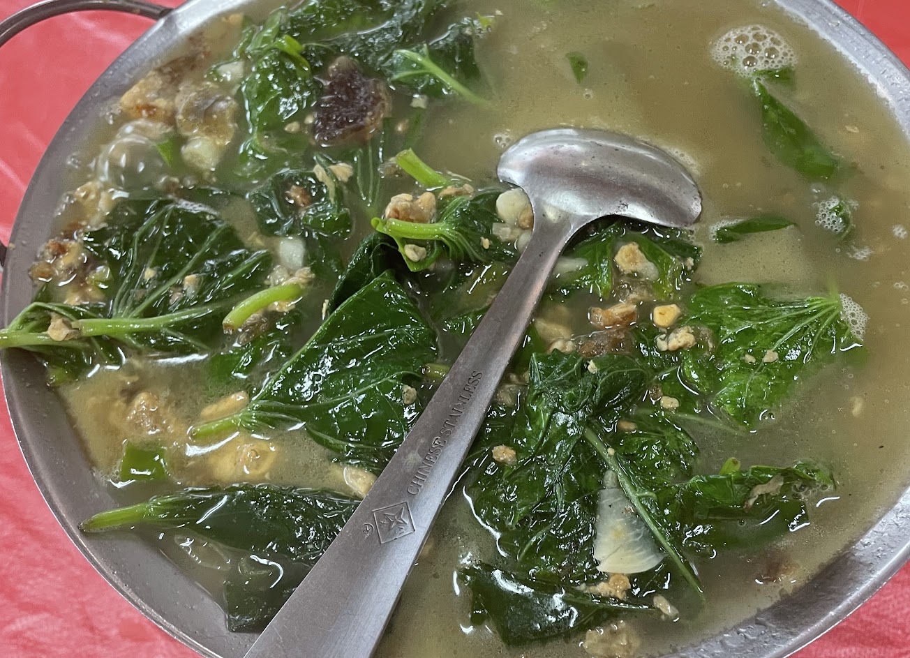招牌的地皮湯真好吃,地瓜葉很嫩,地皮湯就是地瓜葉+皮蛋還有一些豬絞肉,配飯很讚。