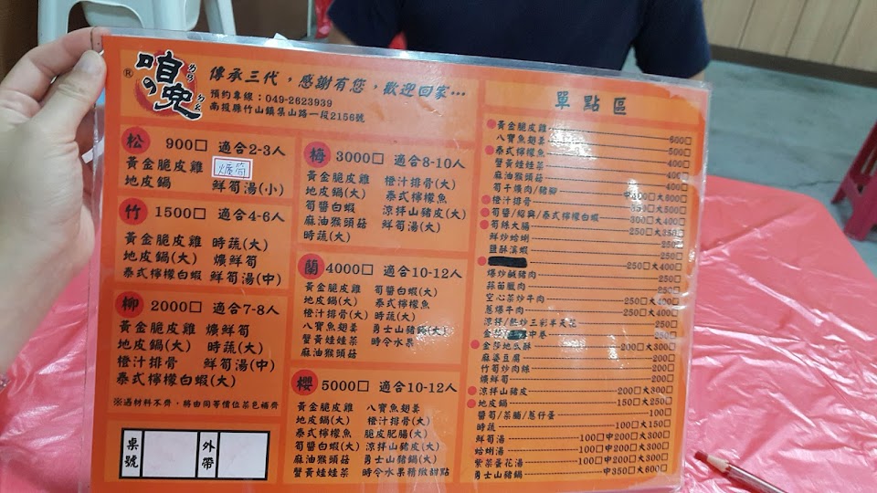 這家的烤雞不錯吃番薯葉加鹹蛋也煮的不錯就是烤雞不算便宜一隻要600元可都邀數位朋友一塊吃