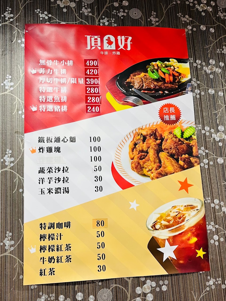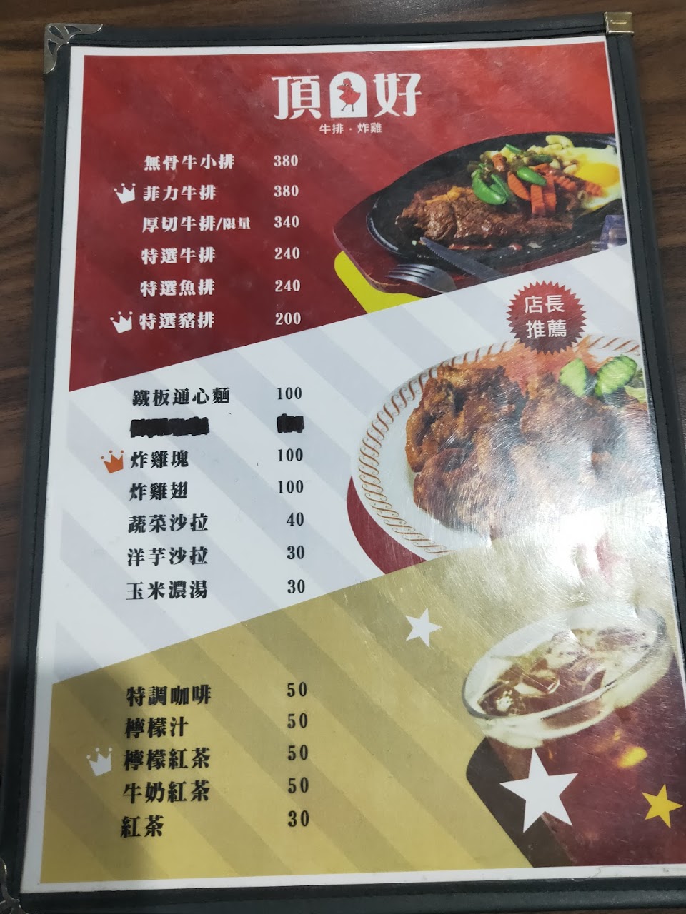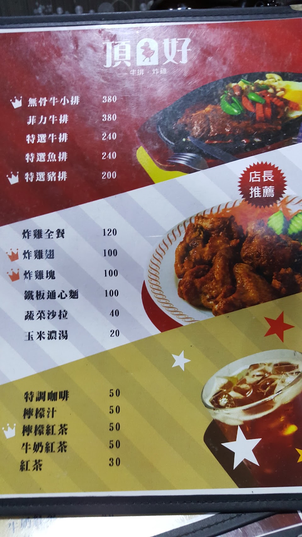 2024最新在地推薦餐廳的菜單_頂好牛排炸雞的菜單、圖片