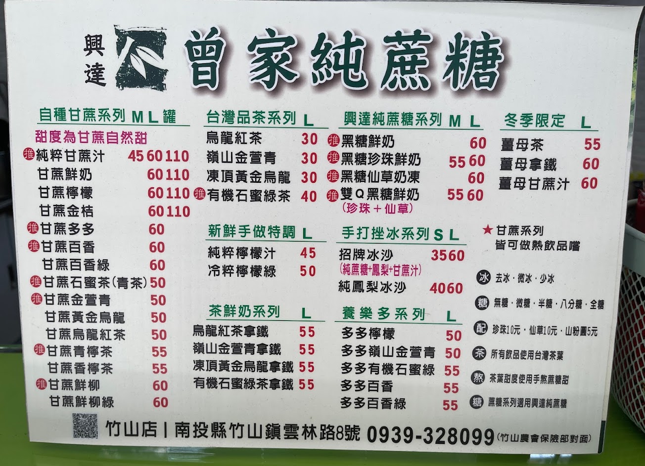 前陣子到竹山走走,看到這間飲料被吸引到,擁有自家甘蔗田和自種台灣茶葉,招牌火山頭鮮奶濃醇甜香好喝,甘蔗金萱茶彼此不搶味順口,推薦喝看看!