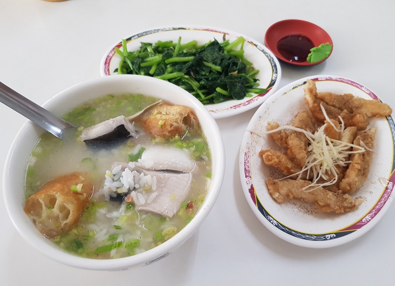 酥魚肉,魚肚粥都很好吃, 地瓜葉也很嫩, 但是地瓜葉有一點點小貴