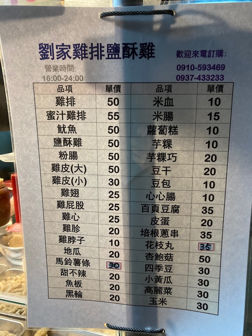 價格很佛心,雞排都沒漲價,推薦雞屁股、雞胗、雞心、魷魚、鹽酥雞 都好吃