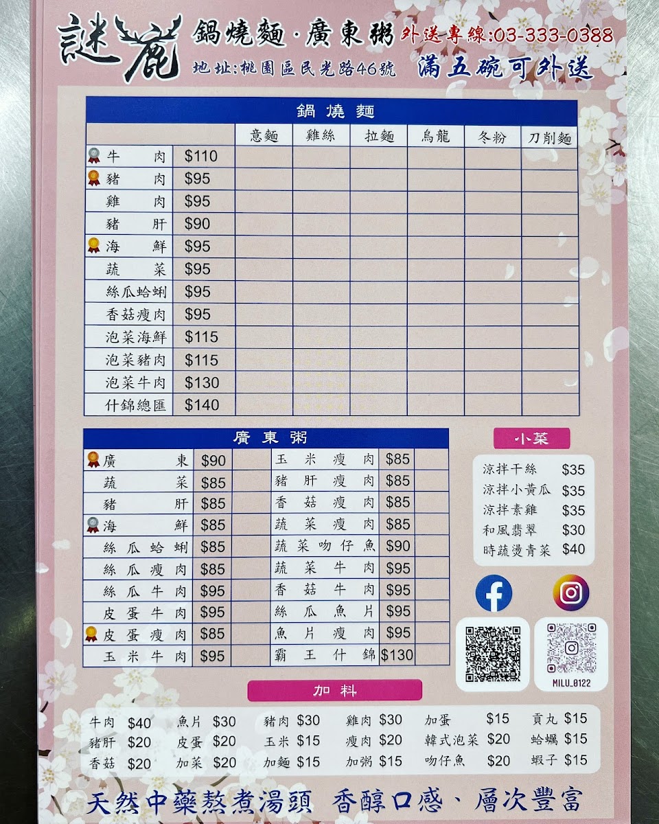 2024最新在地推薦餐廳的菜單_謎鹿鍋燒麵廣東粥的菜單、圖片