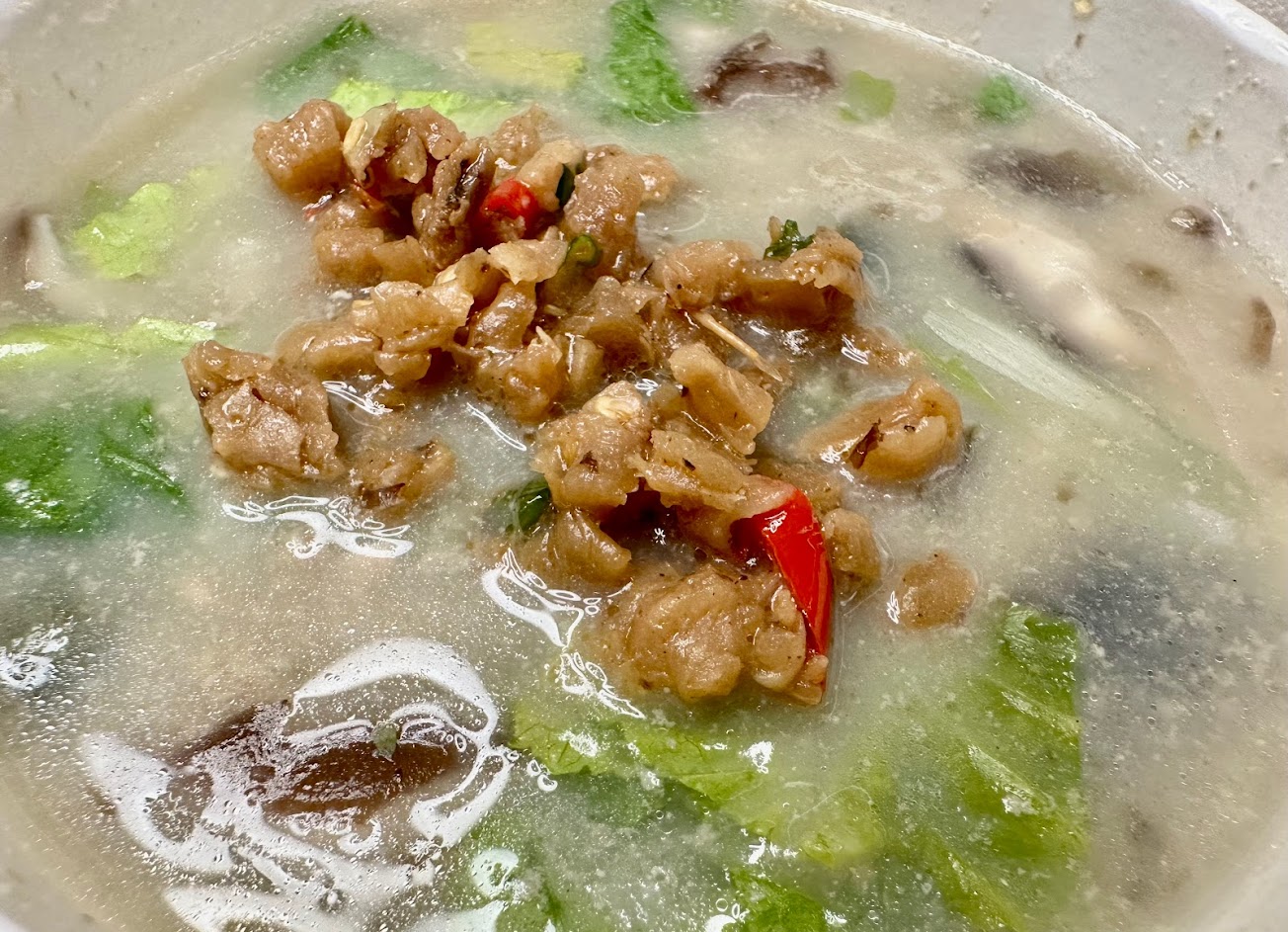 超級鮮美的豬肝湯頭(意麵?) 及廣東粥 … 服務 外帶
