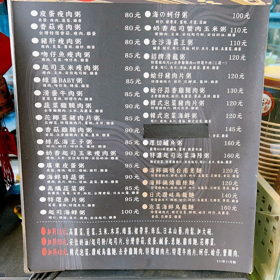 粥的品項很多