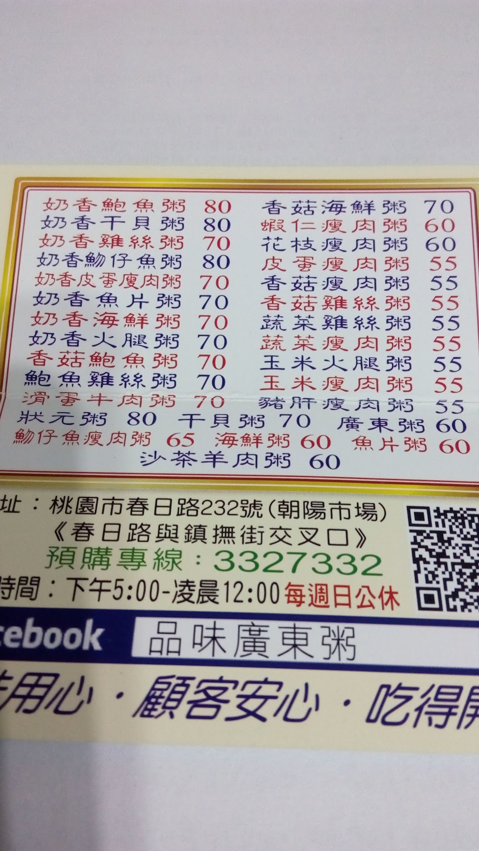 相較於很多粥店,品味的用料跟風味都是很大方的,就算騎車也會到這裡買粥或麵,是在桃園區的首選。