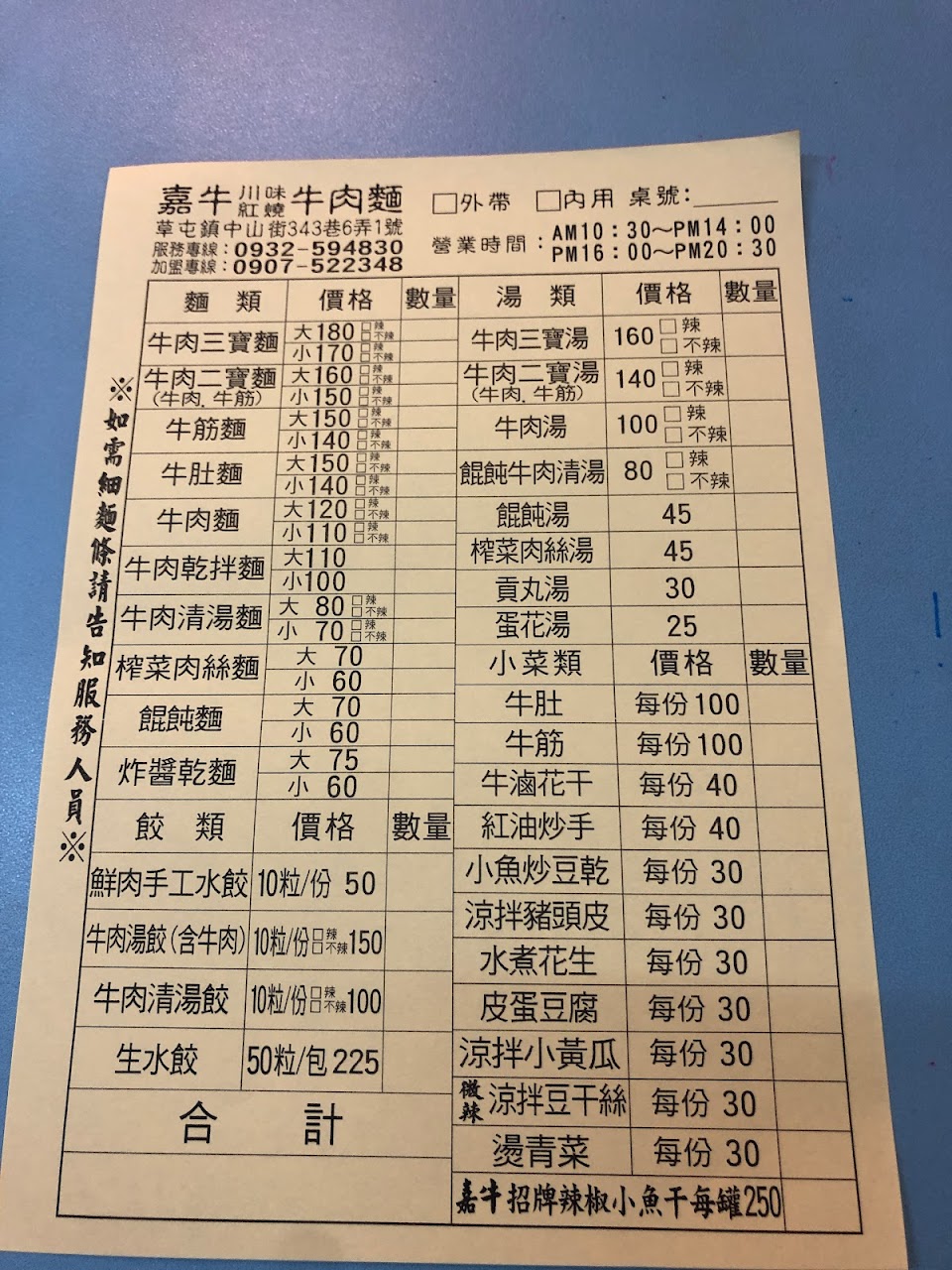 點了牛三寶麵,和牛肉乾辦麵,燙青菜,牛滷花干