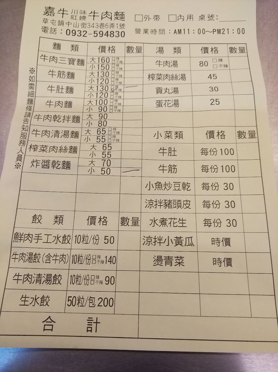 買了三碗麵 第一碗半筋半肉我爸吃的 第二碗牛肉湯麵加餛飩我吃的 第三碗牛肉麵我媽吃的 中午買的 吃完我拉三次我爸拉五次 拉到整個虛脫 原本想打電話去講但是我爸叫我算了 以後不會光顧了 服務 外帶 餐點類型 午餐 平均每人消費金額 $400-600