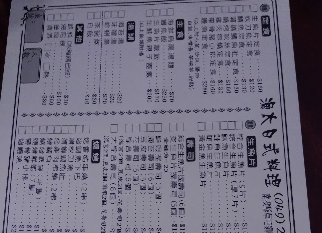 壽司及烏龍麵的CP值高,簡餐的CP低了些!!烤軟絲軟硬適中,好吃!手捲普通沒特別感覺!! 生魚片沒點過,所以不知道!! 店內有白開水可以喝,所以不用怕口渴!! 尖峰時段要排隊,所以特地要去吃的人,盡量避開該時段!!