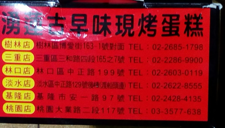 阿惠:我在北投從小一起長大的至友,因家有一極善料理的母親→養成他為饕客中的饕客;一碗”生力麵”在他手中可以幻化成珍奇的口味(大火快煮後,撈起甩乾水分,再以電風扇吹乾,配上獨製的特殊醬汁…),;可是當我招待他去吃桃街的著名牛肉麵,且問他:[如何?好吃嗎?],回[就是一碗牛肉麵];但當我們一起去延平北路,嚐了一攤”米糕沒/粥(台語)”→他直讚嘆:[這是依古法精心嚴製出來的珍品啊 !現在沒人在這般做了。]°最近他載吳牧師去北投,特地的請牧師吃古早味現烤蛋糕,一直讚不絕口;林口分堂開幕時,便特別訂了好幾百份蛋糕分送來賓,吃過了後→都讚不絕口。現特別介紹給在地嚮導粉絲,希望都能合您的意。她有:奶香原味,乳酪起司,核桃咖啡,暴漿巧克力。