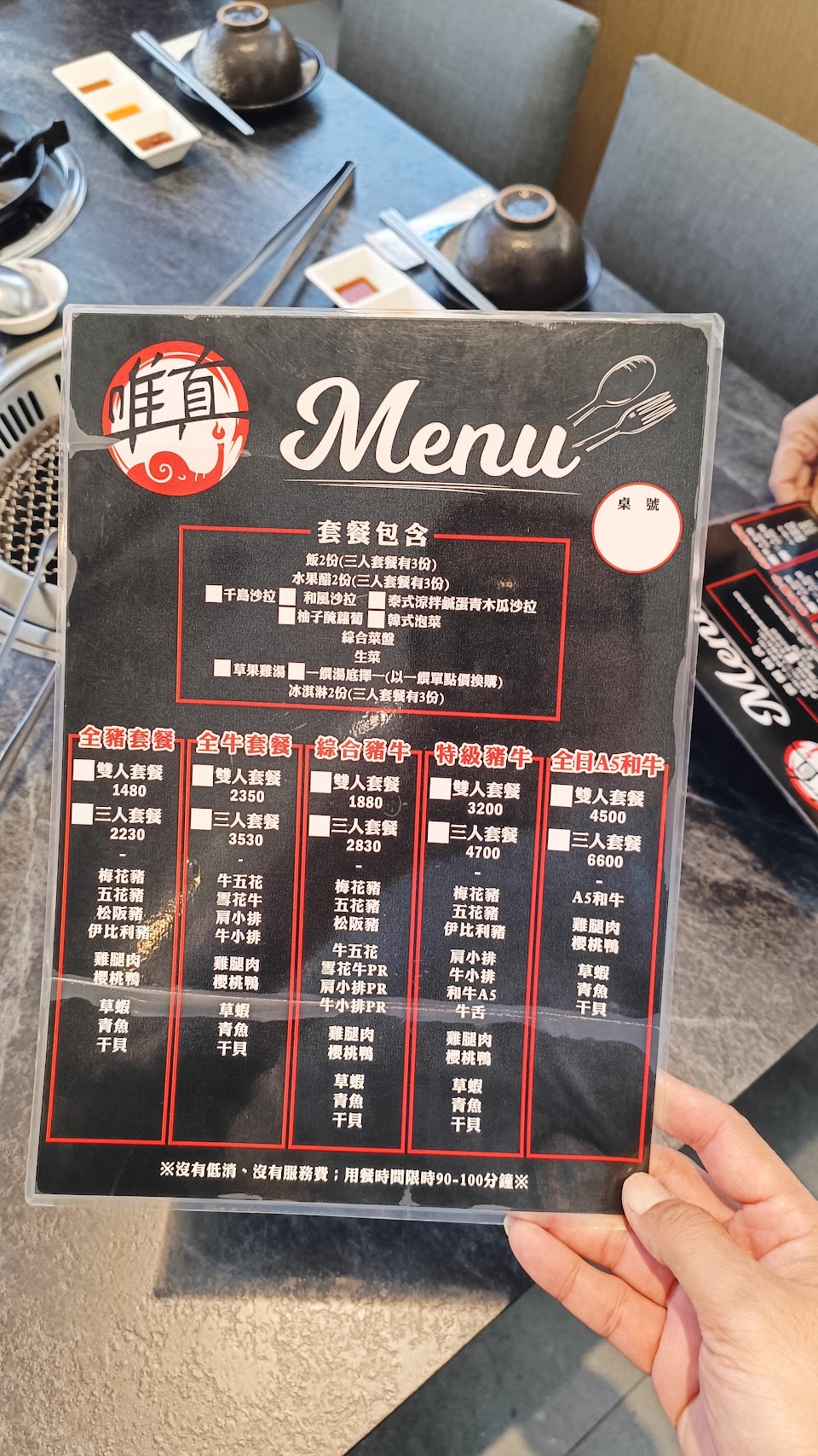 今日來中部遊玩,朋友說來中部就要吃烤肉,但我本人有年紀了就比較不想要吃吃到飽的系列,然後問到有一間在「田中央」的餐廳,就來此用餐,跟女朋友兩人點雙人套餐(1880元系列),前菜沙拉點泰式青木瓜拌鹹蛋,很有特色,女朋友是說在辣一點會更好吃,加上各式肉品還有一鍋雞湯,湯頭也很棒(都快喝完了),真的吃的超飽,又好吃?,服務及餐廳環境乾淨,用餐真的很愉快。