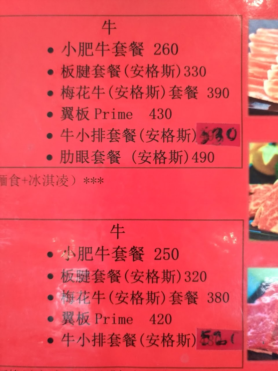 最新的菜單又漲,460元的翼板牛被拿掉了,被被原本360元的板腱牛取代,一樣賣460?。之前就漲價過了,萬物齊漲還能接受,但菜盤似乎量變少,好吃的花枝丸也沒有了,感覺好差….
