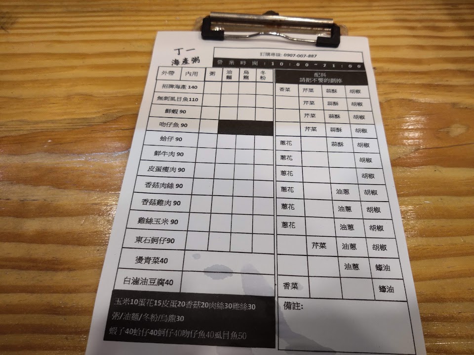 2024最新在地推薦餐廳的菜單_丁一海產粥的菜單、圖片