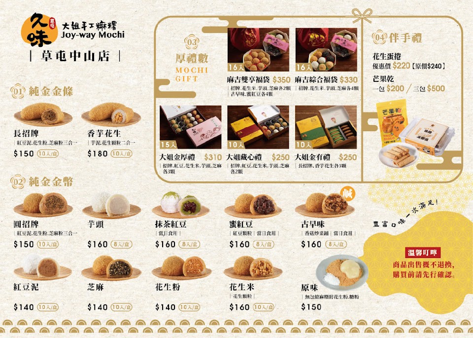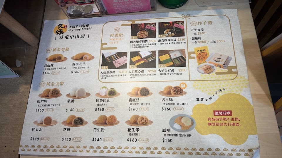 2024最新在地推薦餐廳的菜單_久味大姐手工麻糬中山店/南投伴手禮/草屯美食/必吃團購甜點的菜單、圖片