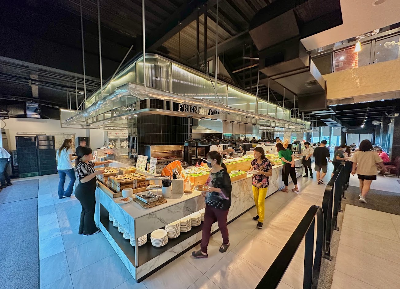 7/17星期一當天訂位17:00,帶位的服務人員帶到角落六人的位置,正當要坐下時,服務人員拿出隔板,請我跟友人往內坐,旁邊又有另一組三人的家庭客,我直接莫名奇妙要併桌應該事告知客人吧!我當下問帶位服務人,她直接略過沒聽到完全不回應。開始夾餐我就去蒸籠區開始開盲盒,品項完全沒標示,甜點區有人員服務,甜點不難吃。17:52分服務人員來問火鍋還要煮嗎?我跟友人真的問號,這間是我吃到飽餐廳中吃最快最少的一家。店家生財有道。