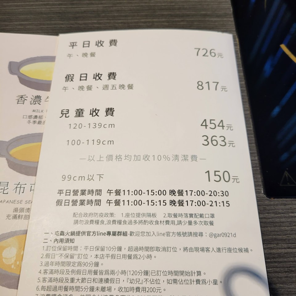 餐點品質符合價位 但110cm坐著推車的小孩,還只會喝奶也要收330⋯⋯ 用餐時間8/7 1900 服務:1