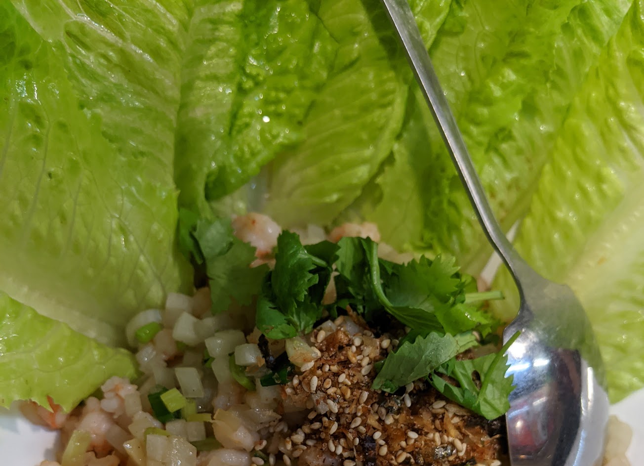 生菜蝦鬆加了香菜.芝麻海苔調味粉 太搶味小扣分