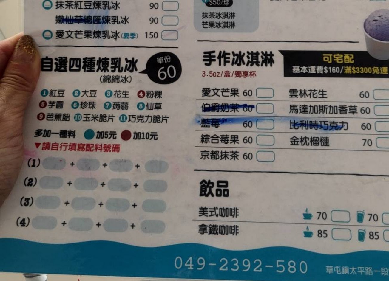 最後點了自選料的煉乳冰,刨的很綿密,我老公還以為我點了雪花冰!