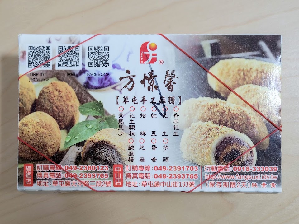 到草屯來當然要來買一下知名的麻糬,選了芋頭花生口味和純麻糬(吃的時候再沾附的花生粉,還不錯