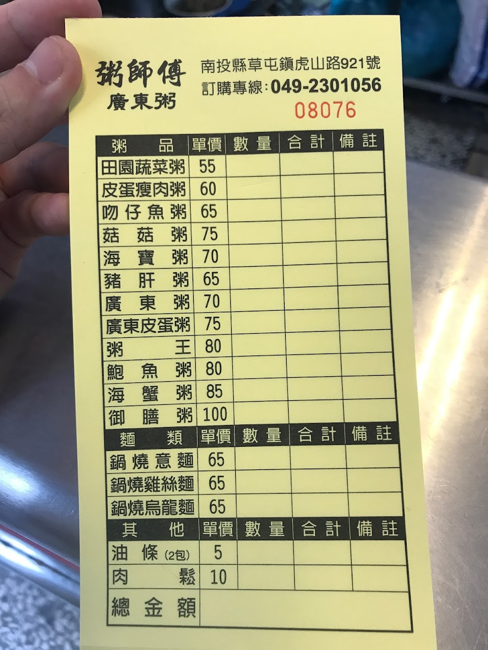 草屯粥品第一首選,口味品項多種選擇,Cp值很高 服務 外帶 餐點類型 晚餐 平均每人消費金額 $1-200