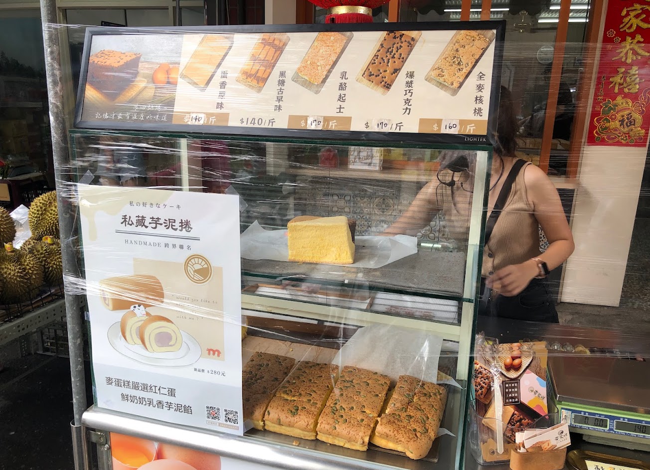 價格 (1) 蛋香原味:$140元/斤 (2) 黑糖古早味:$140元/斤 (3) 乳酪起士:$170元/斤 (4) 爆漿巧克力:$170元/斤 (5) 全麥核桃:$160元/斤 (6) 私藏芋泥捲:新品價280元