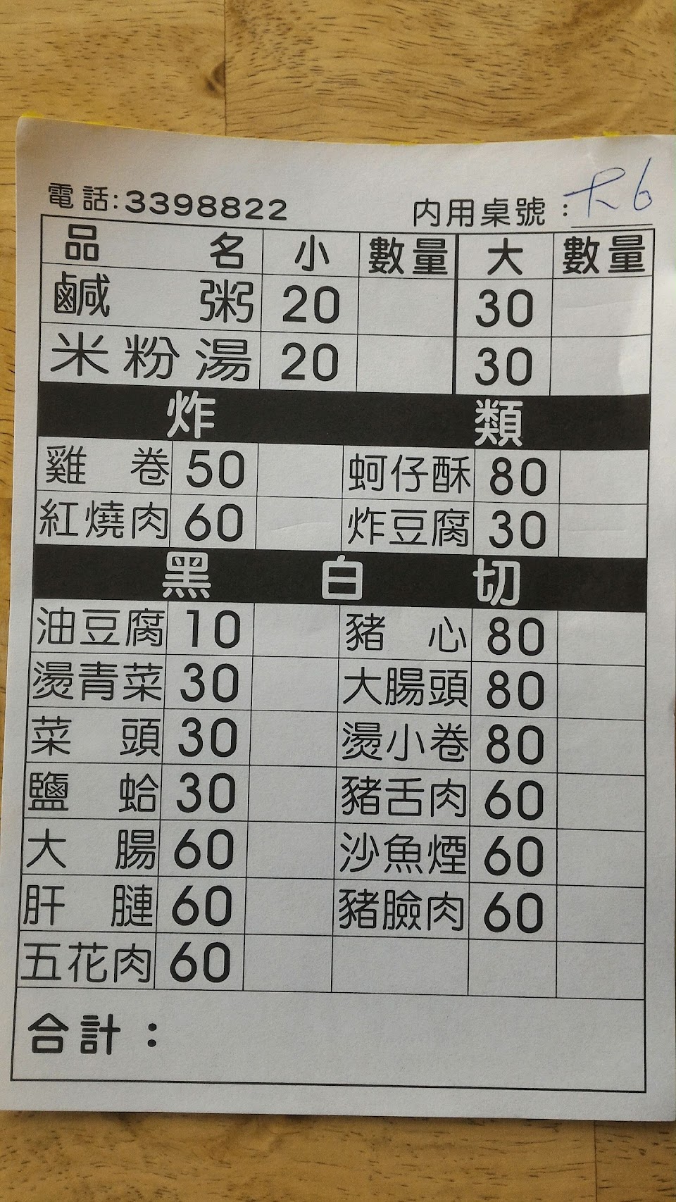 米粉湯 紅燒肉 炸雞捲 鹹粥 紅燒肉 鹹蛤