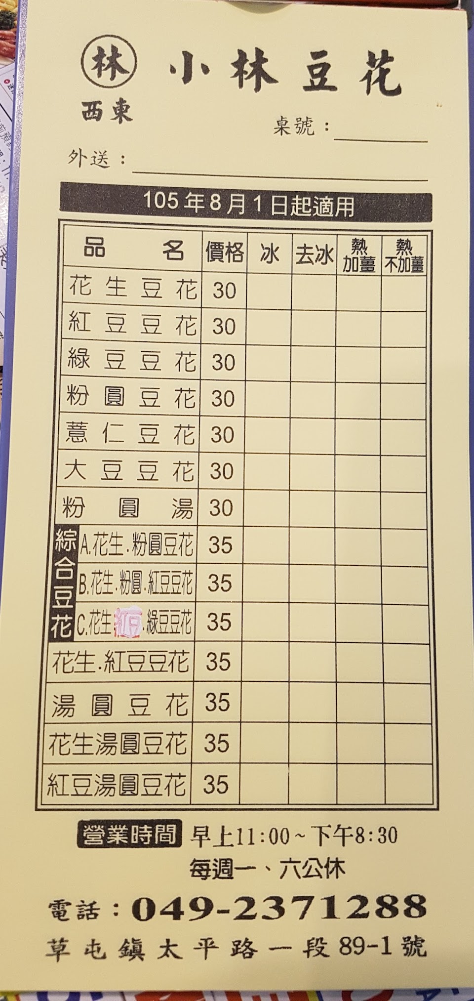 2024最新在地推薦餐廳的菜單_林西東豆花粉圓的菜單、圖片