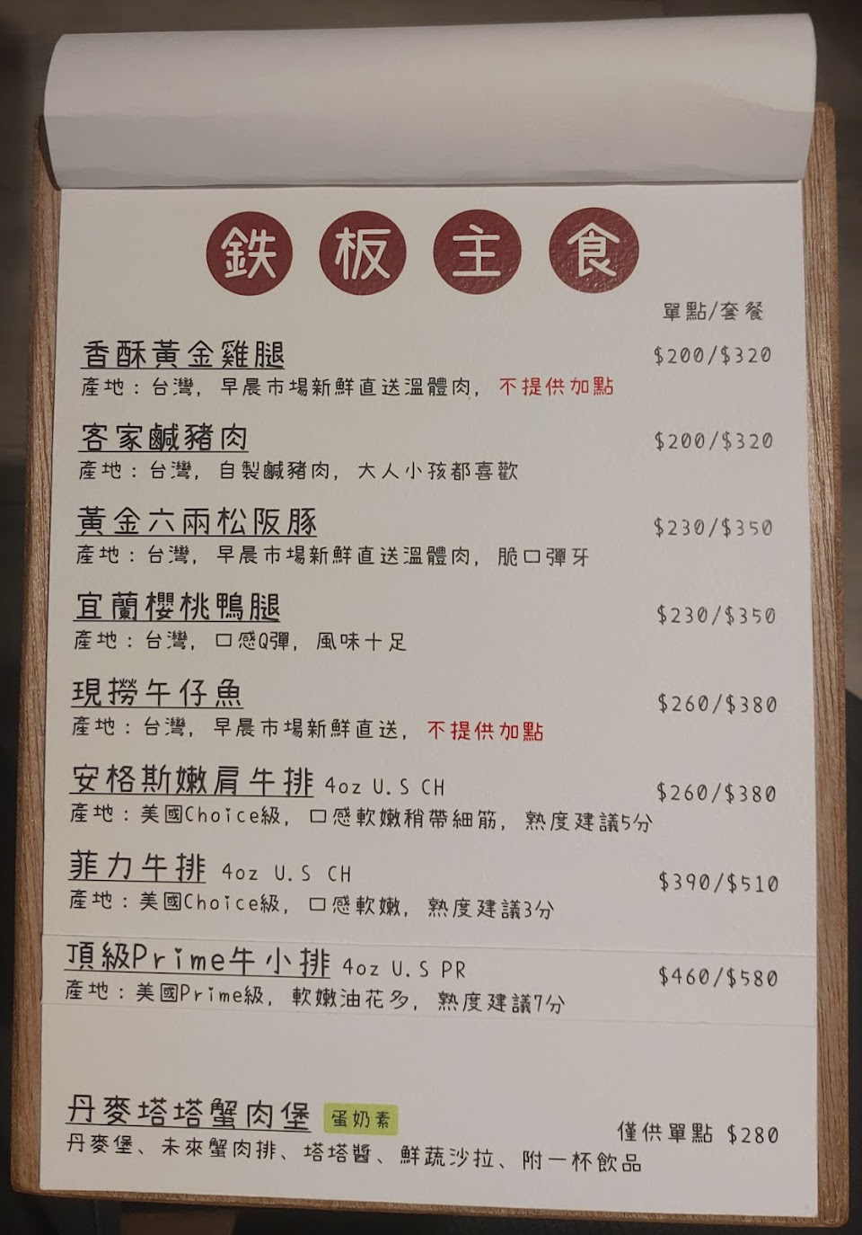 消費餐點:牛小排鐵板套餐