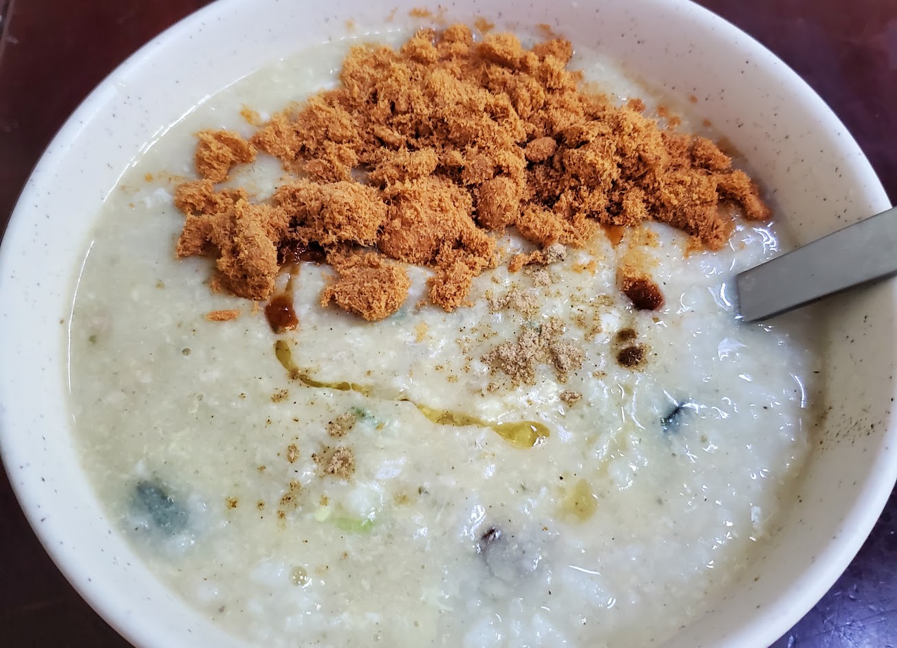 下午1點突然想吃熱粥, 找了最近的店來試試, 點了【海陸綜合粥】, 結果裡面滿滿的碎皮蛋&鋪了肉鬆? 還有一些姆指大小的豬肝,和些微的絞肉, 原來這就是所謂的海陸?? 建議來這點皮蛋瘦肉粥就好😊