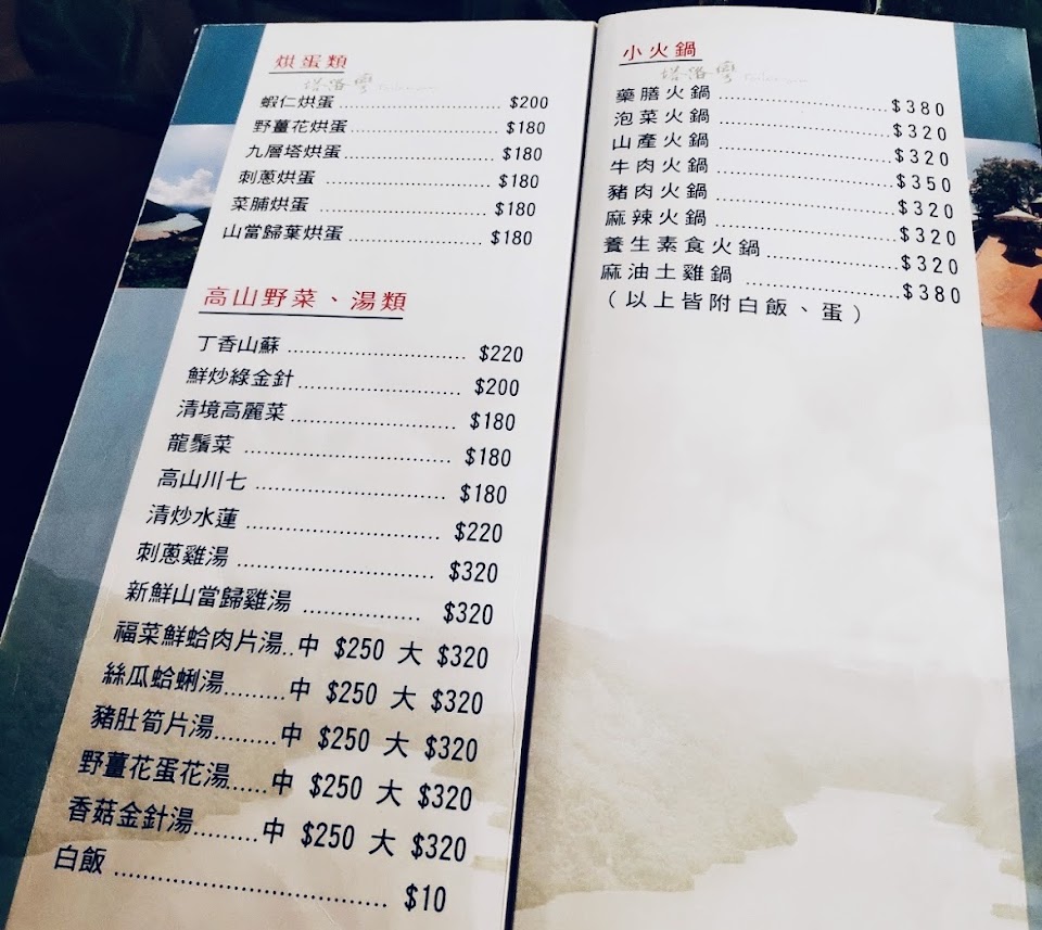 今天上清境之前特地來用餐,放在口袋名單很久了,果然是名不虛傳!餐點美味又平價,用餐景色一級棒,讓人很放鬆,櫃檯大姐非常親切、熱情,讓人賓至如歸,是一個非常推薦去清境農場玩時上山之前的用餐餐廳,另外店裡賣的水蜜桃也很好吃喔!