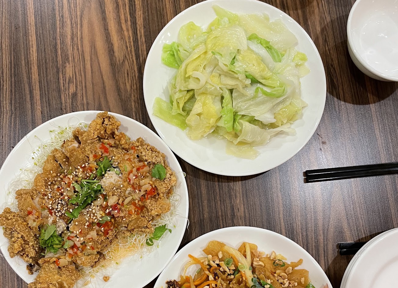 椒麻雞炸得過老了,醬汁也給得太少,吃起來乾巴巴的!椰香芋頭麻糬好吃。評價高但吃完覺得蠻失望的⋯
