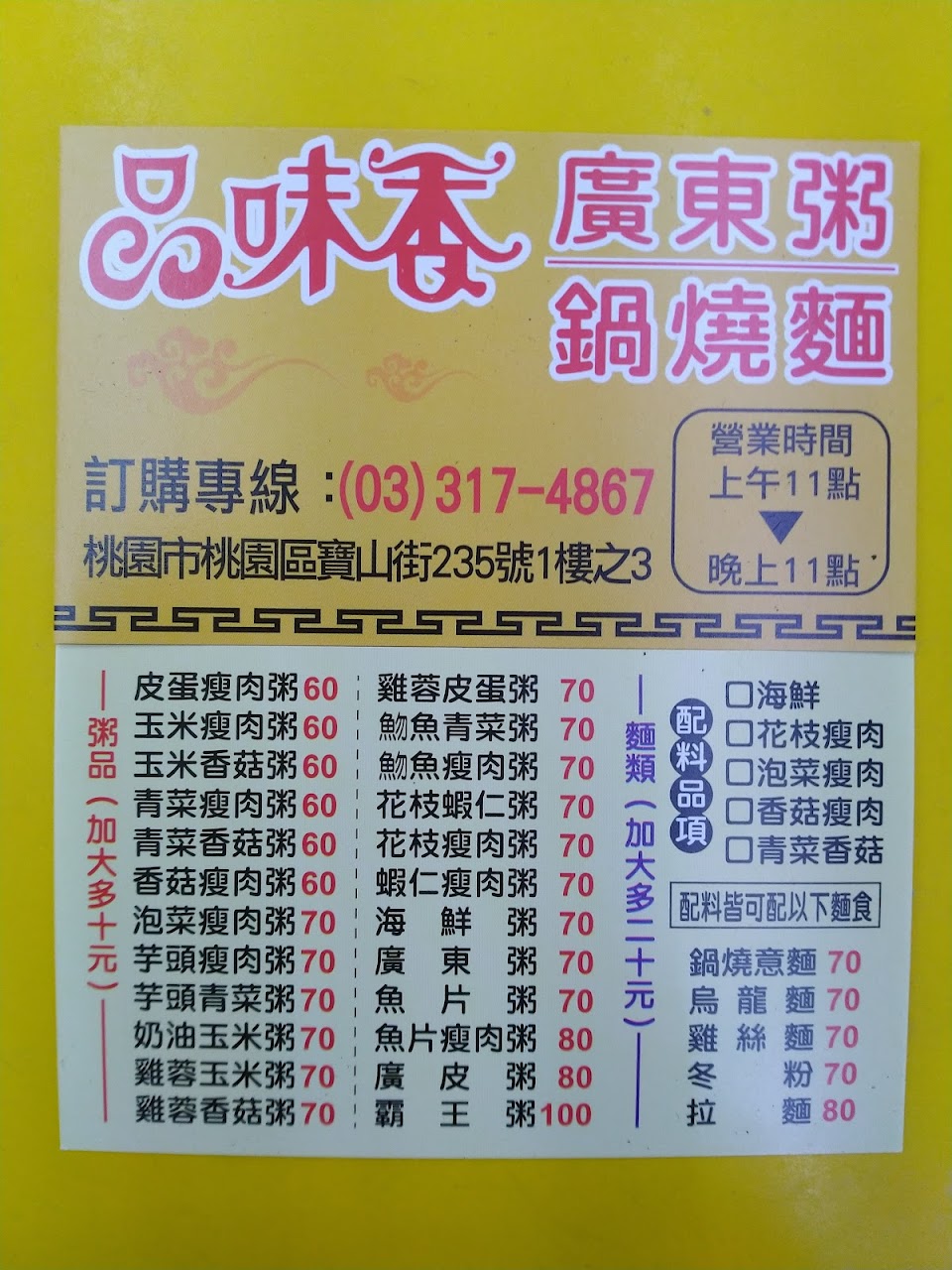 2024最新在地推薦餐廳的菜單_品味香廣東粥鍋燒麵的菜單、圖片
