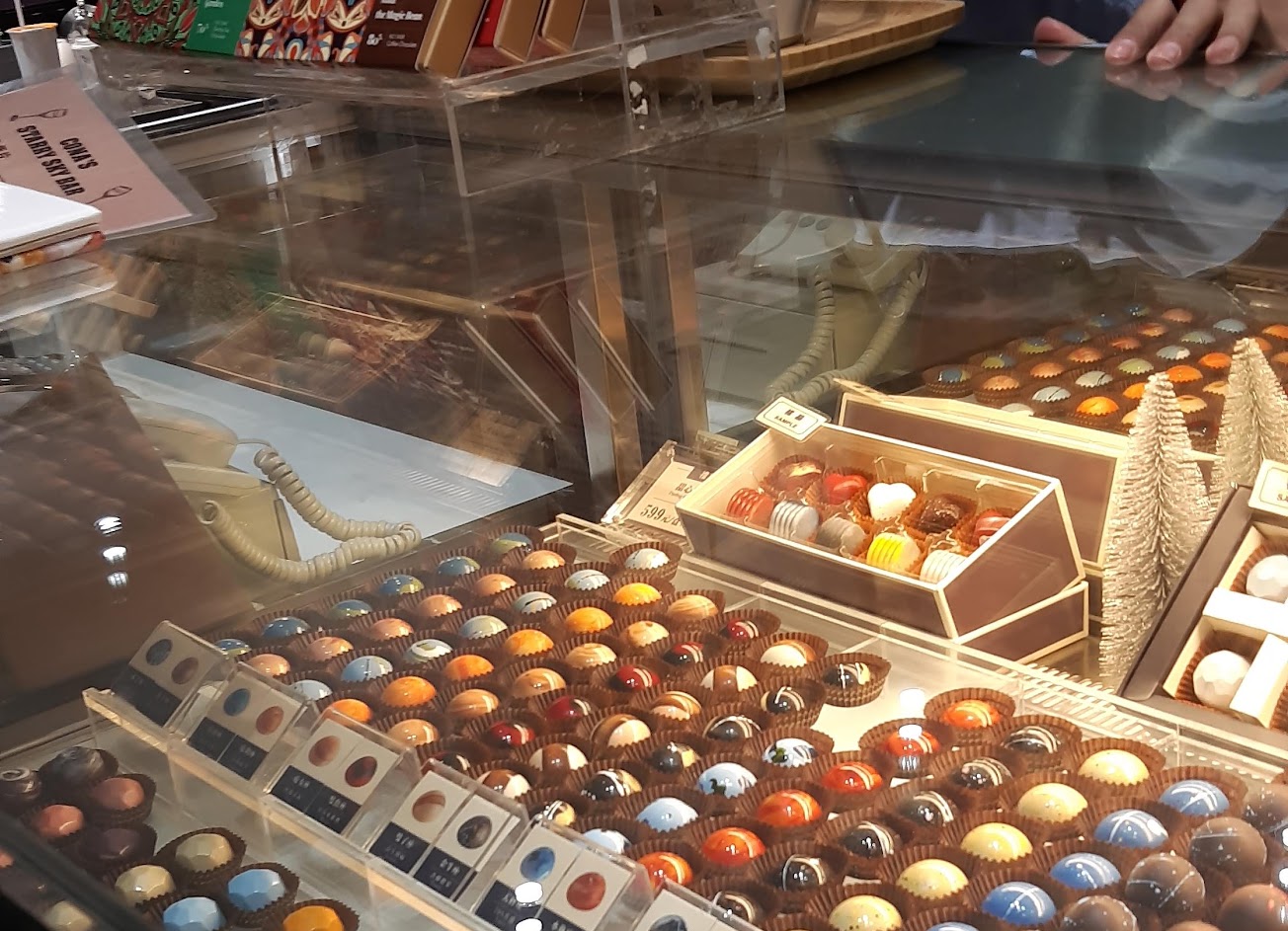服務人員親切介紹商品,每個巧克力商品都好美