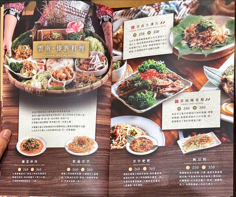 來了清境這條路線,當地茶葉朋友介紹,沒想到用餐(靠窗),特別滇菜配美景,口味比我往昔吃的滇菜沒那麼酸,那個雞蠻嫩,擺盤特殊有風味!