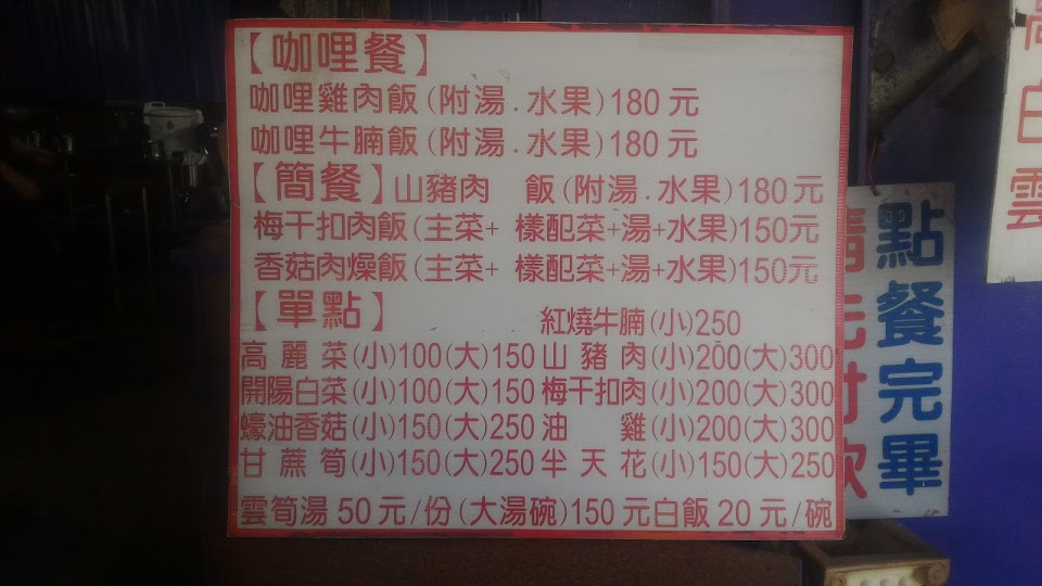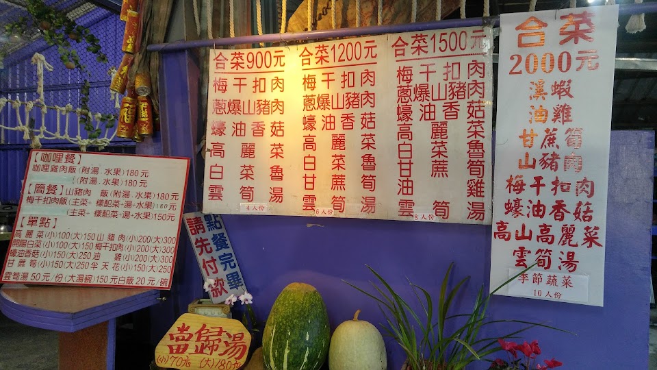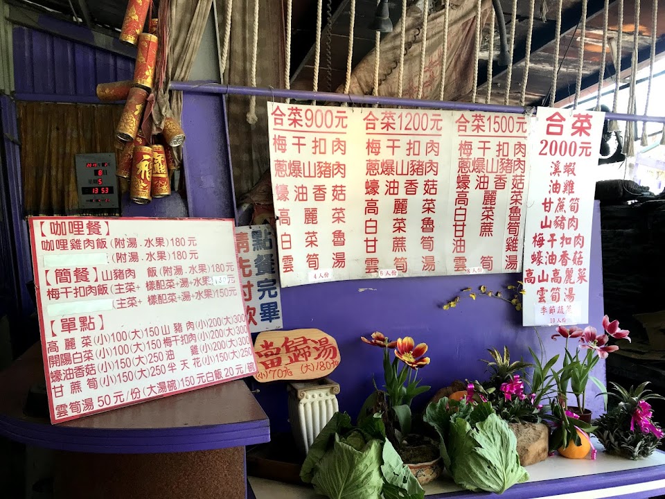 到奧萬大中途唯一看到的餐廳,食物很棒、價位合理。老闆也很親切,據說玉米全台第二好吃,點了山豬肉、高麗菜、溪蝦、筍湯、白飯跟 3 根玉米才 670 元,老闆還請吃佛手瓜,如果老闆不抽菸就更好了。