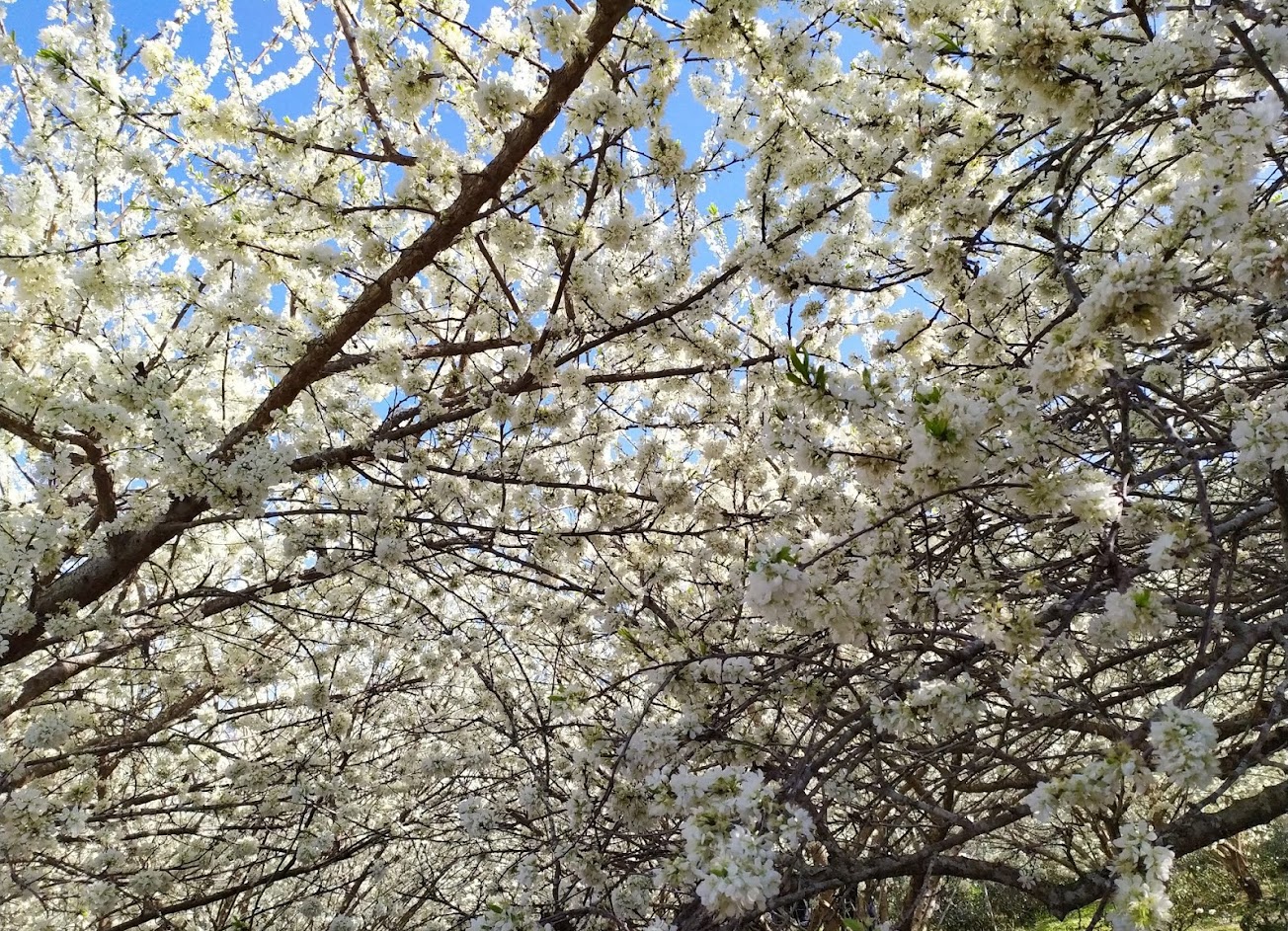 李花大盛開,風吹來花瓣飄落,往小路徑走,處處都有驚喜,接下來應該是櫻花接力