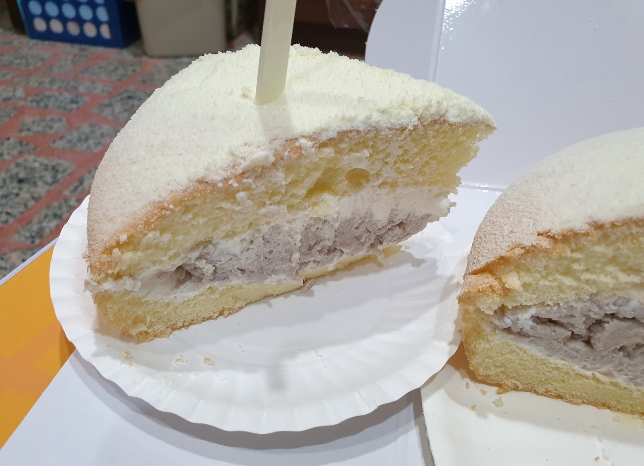 雙層海綿蛋糕,加上打發鮮奶油,也是雙層鮮奶油餡。入口即化又冰冰涼涼的口感,內餡清爽不油膩,最上面灑的是奶粉,而不是糖粉,是不是也想來一塊了?除了原味、巧克力還有芋頭口味。