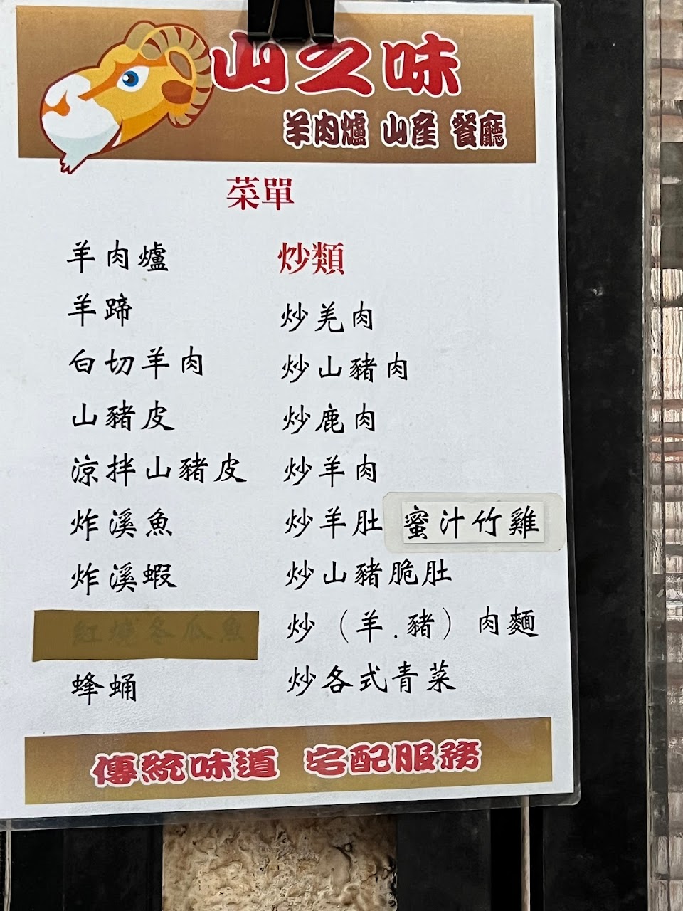 冬天到了,快來吃羊肉哦! 這家老店羊肉湯頭,紅悶羊蹄,白切羊肉的好口味,是來水里的您絕對必嚐的哦! 尤其是那蜜汁竹雞更是店裡的工夫菜,很讚的哦!