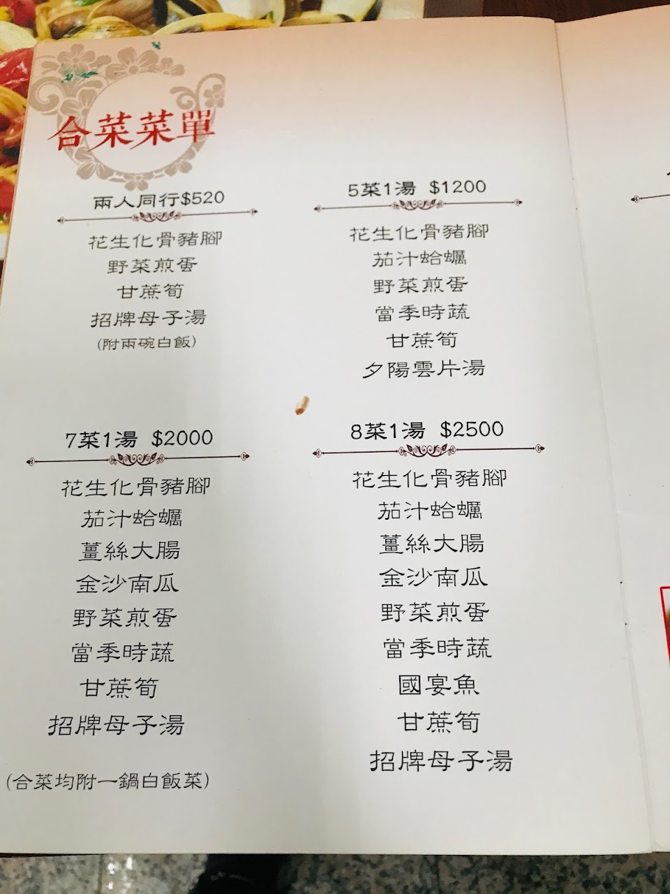 食物不是很新鮮,2500的合菜比在台北市吃cp值還低。