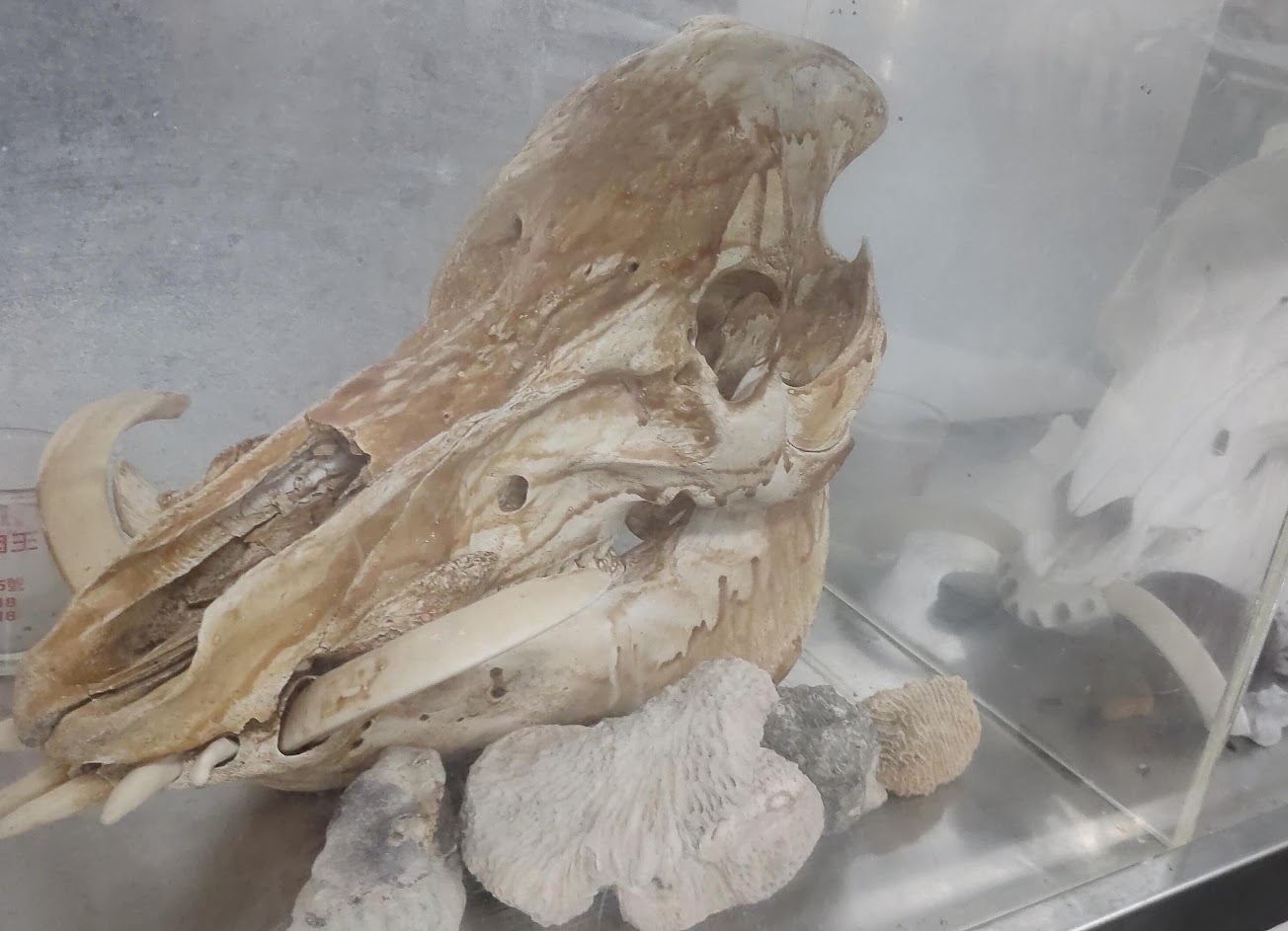店裡很乾淨衞生,而且還看到特別的收藏~超大公山豬頭骨、巨型烏鰡的牙齒、鱗片、鐵丸石……..等等。