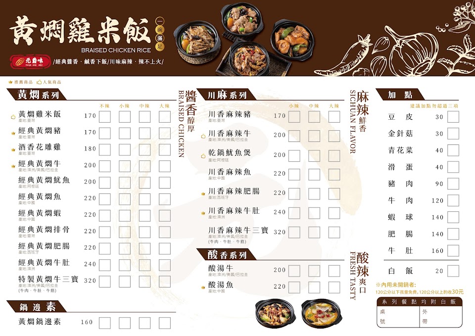 2024最新在地推薦餐廳的菜單_元爵味 黃燜雞米飯 南投草屯店的菜單、圖片