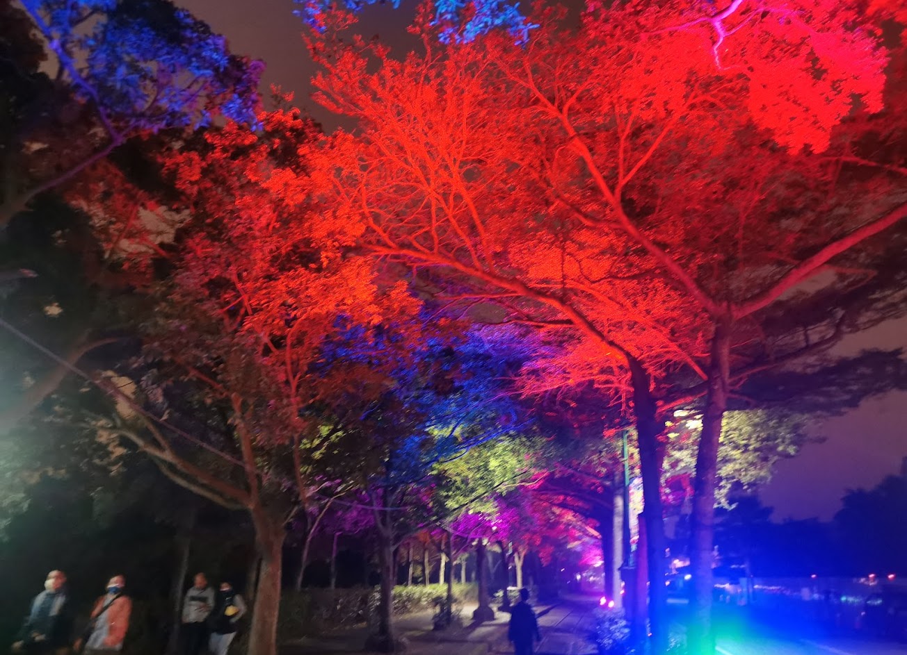 夜間火車站周邊有漂亮的燈飾,氣氛頗佳。