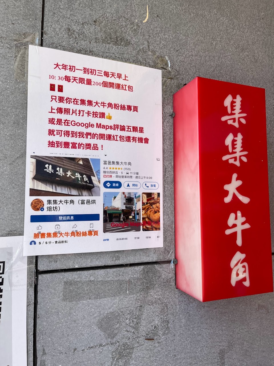 真的是大牛角。這家開業很久了,有到集集都會來買~口味很多也很好吃。買十送一