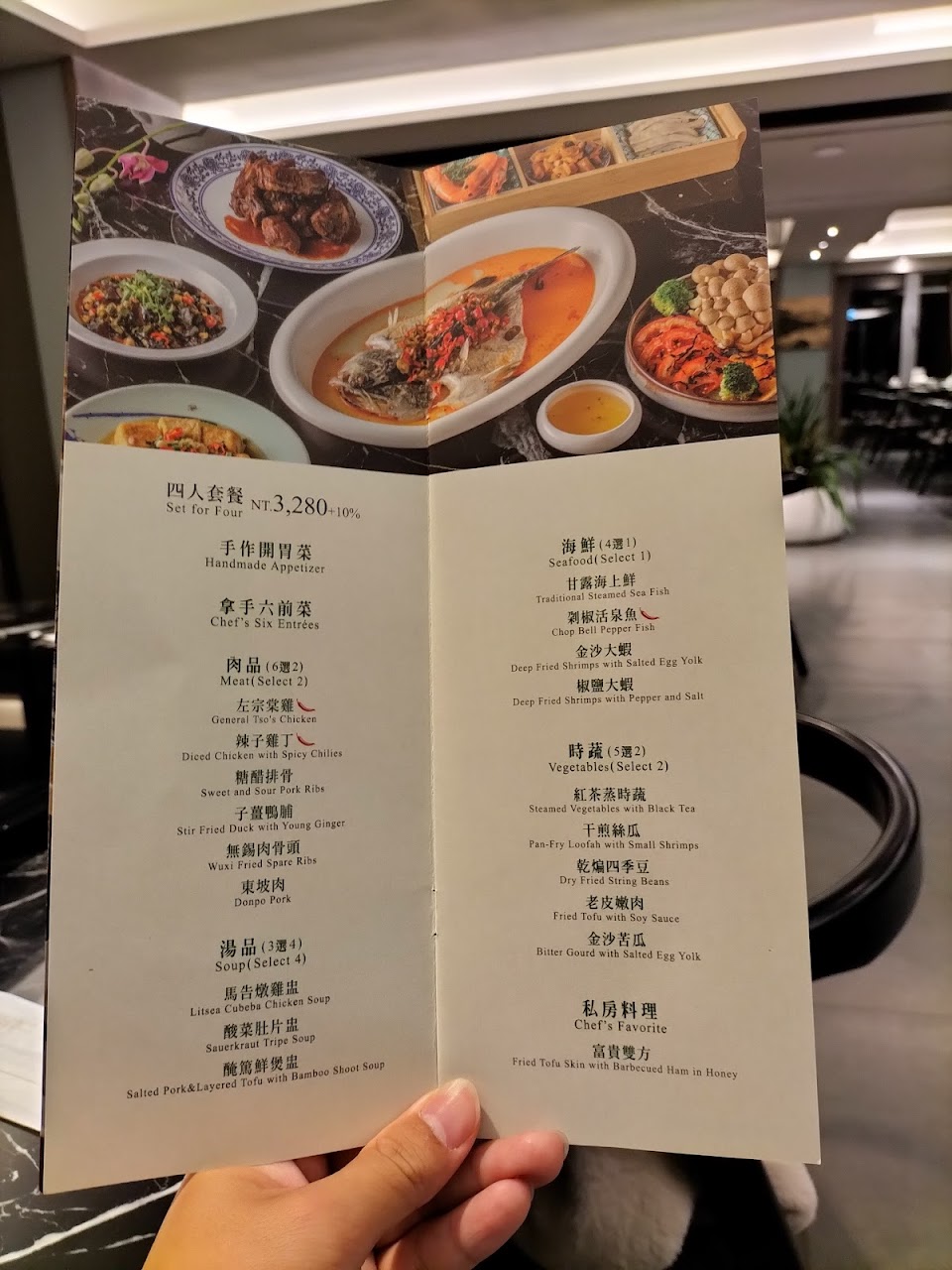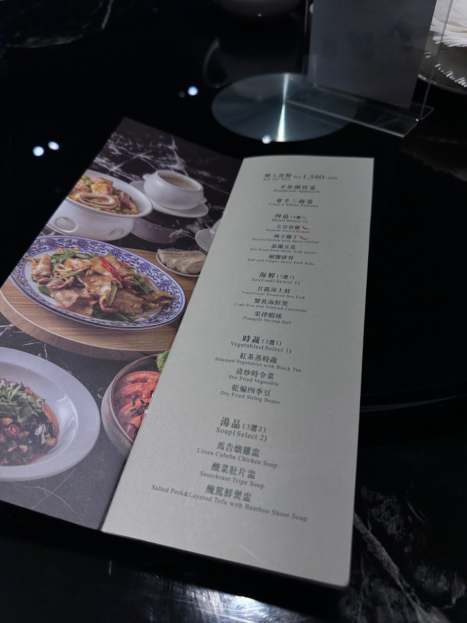 味道尚可,但上菜順序整體吃下來,越吃越沒味道,醉蝦徧鹹,排骨和苦瓜還行,但豆酥不酥也不香,但口感非常硬,感覺是在吃生豆渣,牙縫卡好卡滿,沒有什麼味道和香氣。