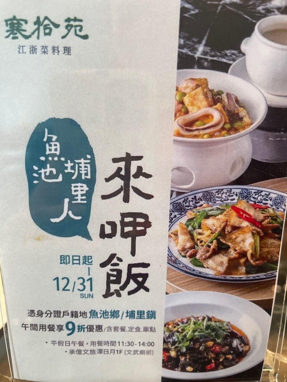 寒拾苑江浙料理餐聽位于承億文旅的一樓,餐點都非常好吃美味喔!