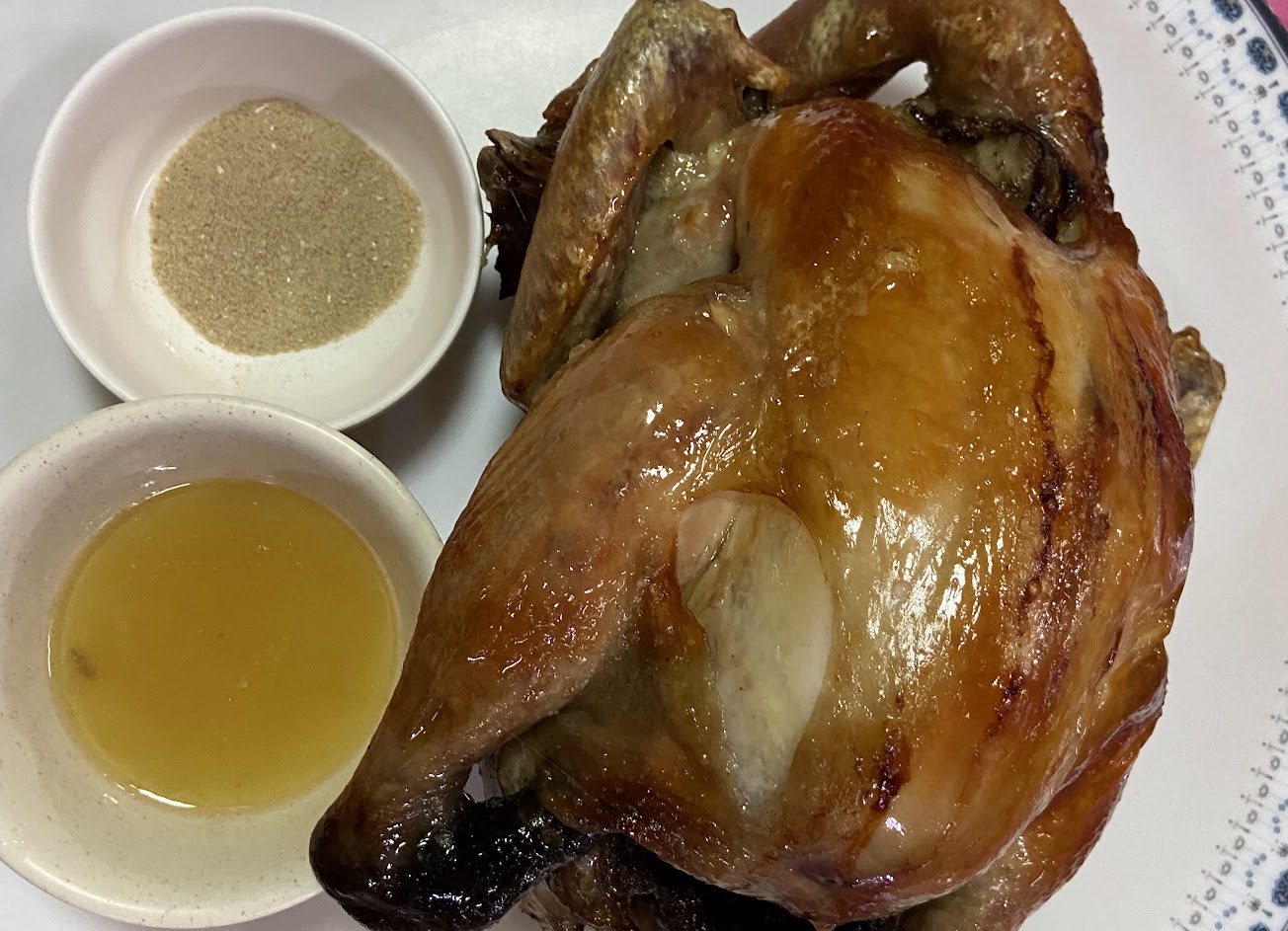 在烤雞一端上桌那迷人的香氣就不斷湧上來,那焦脆油亮的雞皮也太吸引人了吧!烤雞經過長時間的悶烤,所有的精華跟肉汁都完整的保留在雞裡面,不管吃哪個部位都不會乾柴,特別挑選過的雞肉,吃起來肉質非常細嫩,我個人覺得吃原味就超好吃,喜歡重口味的朋友旁邊也有附上胡椒鹽唷!
