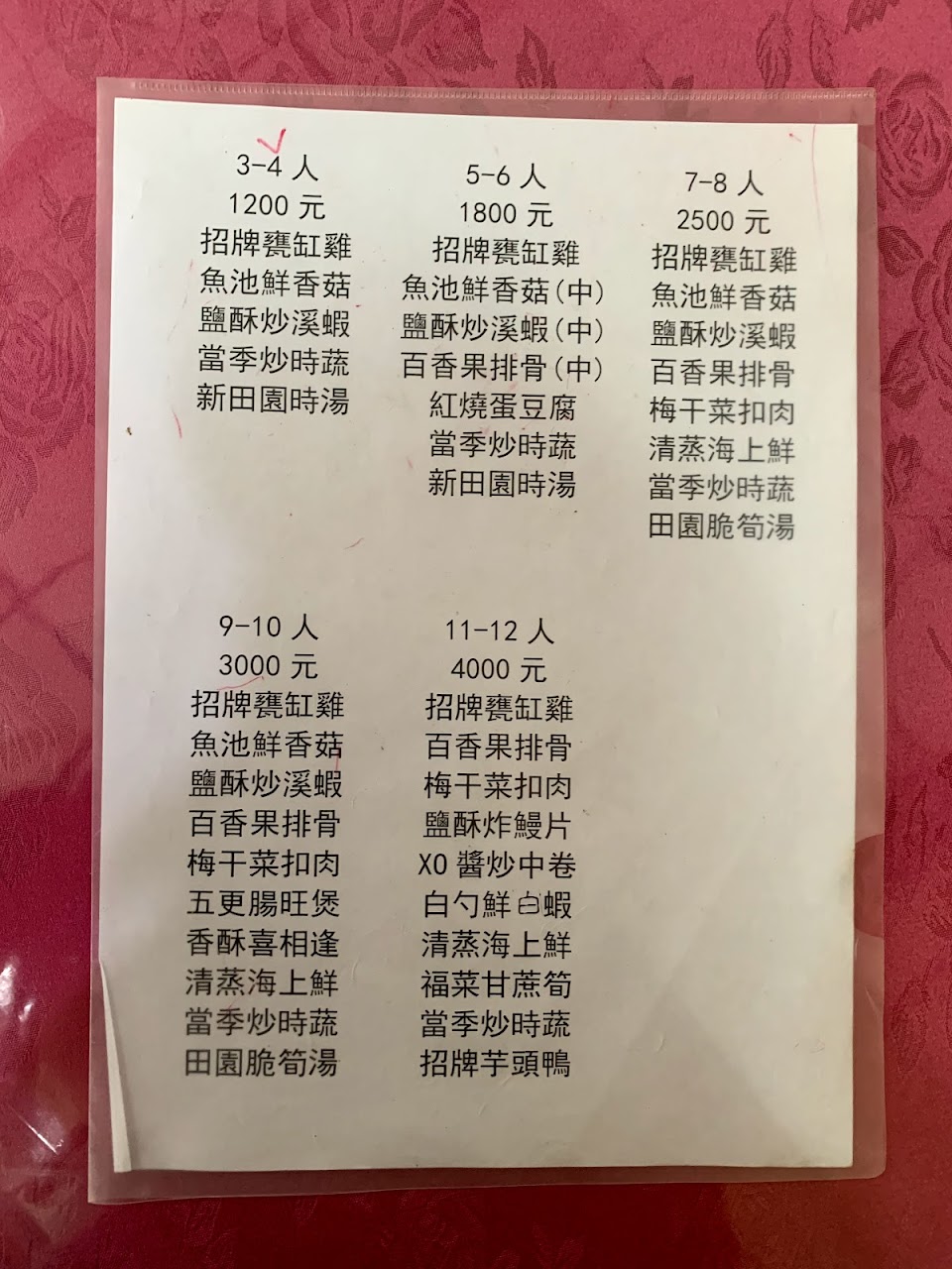 2000多5人合菜,只有雞肉尚可,菜量實在太少,根本不像5人份量,排骨實在少,幾乎肥肉,剩下的就不再多做說明。不是很推