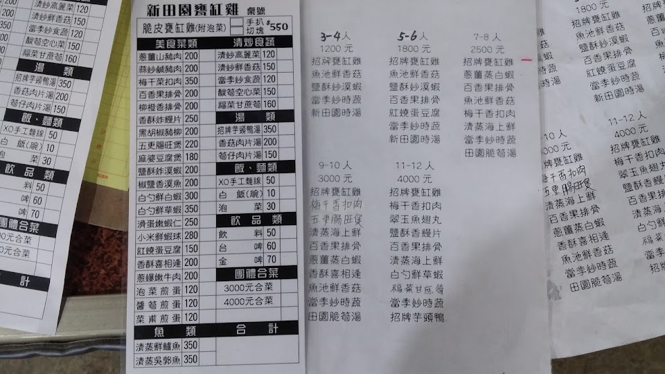 2024最新在地推薦餐廳的菜單_新田園甕缸雞的菜單、圖片