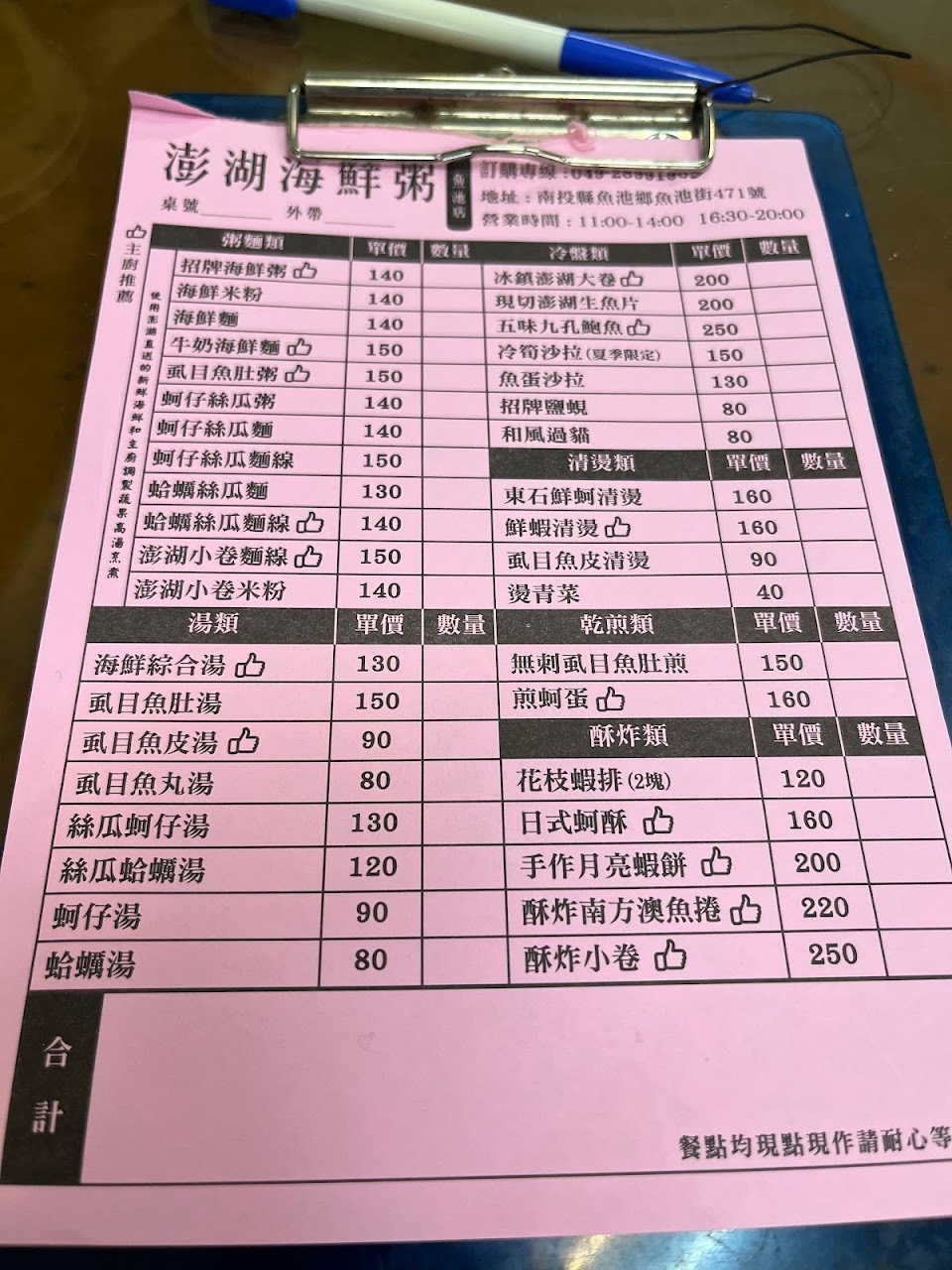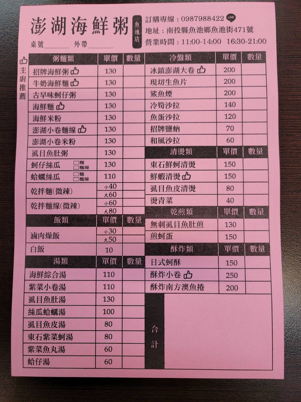 2024最新在地推薦餐廳的菜單_澎湖海鮮粥魚池店/海鮮料理專賣店/平價美食/美食推薦/魚池美食/日月潭美食/人氣必吃推薦的菜單、圖片
